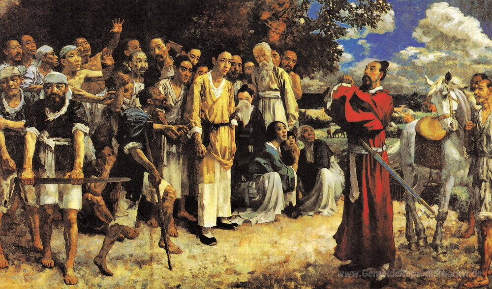Willkommen in unserer exklusiven Galerie für Ölgemälde, in der Kunstwerke von renommierten Meistern präsentiert werden. Eines der herausragendsten Stücke ist das beeindruckende Gemälde Tianheng fünf Hunderte Helden des berühmten Künstlers Xu Beihong. Xu Beihong gilt als einer der bedeutendsten Maler des 20. Jahrhunderts, der für seine Fähigkeit bekannt ist, westliche Maltechniken mit traditionellen chinesischen Stilen zu verbinden.