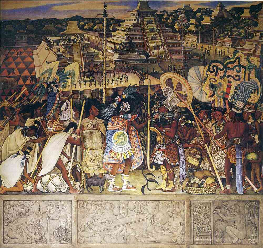 Wir bieten Ihnen eine handgefertigte Reproduktion auf Leinwand des berühmten Kunstwerks 'Totonac Civilization' von Diego Rivera, aus dem Reproduktionsmuseum.