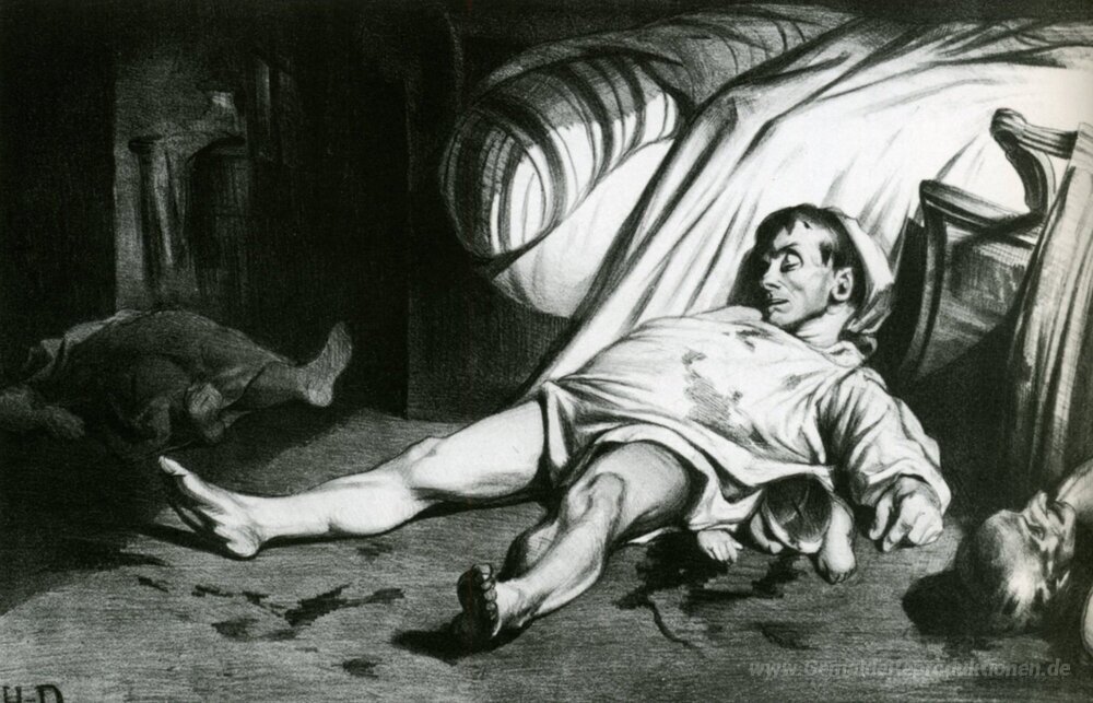 Wir bieten Ihnen eine handgefertigte Reproduktion auf Leinwand des berühmten Kunstwerks 'Transnonain Straße' von Honore Daumier, aus dem Reproduktionsmuseum.