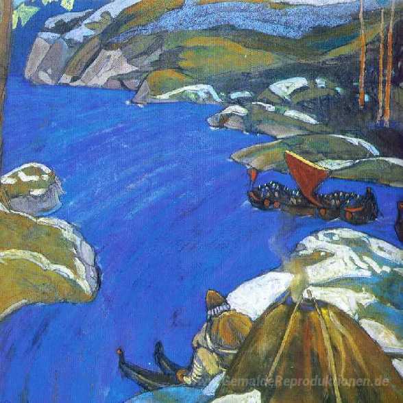 Wir bieten Ihnen eine handgefertigte Reproduktion auf Leinwand des berühmten Kunstwerks 'Varangian Weg' von Nicholas Roerich, aus dem Reproduktionsmuseum.