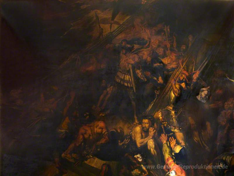 Wir bieten Ihnen eine handgefertigte Reproduktion auf Leinwand des berühmten Kunstwerks 'Vasco da Gama Die Begegnung mit dem Geist des Sturms' von David Scott, aus dem Reproduktionsmuseum.