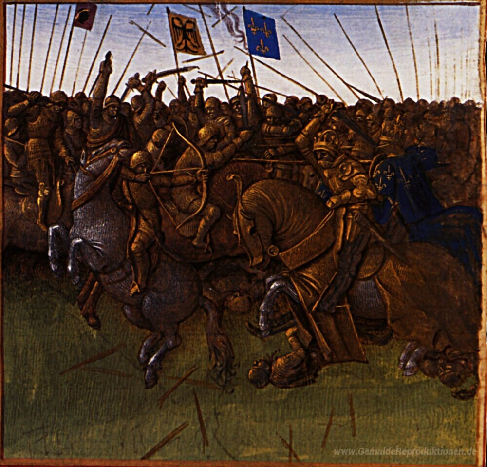 Wir bieten Ihnen eine handgefertigte Reproduktion auf Leinwand des berühmten Kunstwerks 'Victory von Louis III und Karlmann auf die Normannen' von Jean Fouquet, aus dem Reproduktionsmuseum.