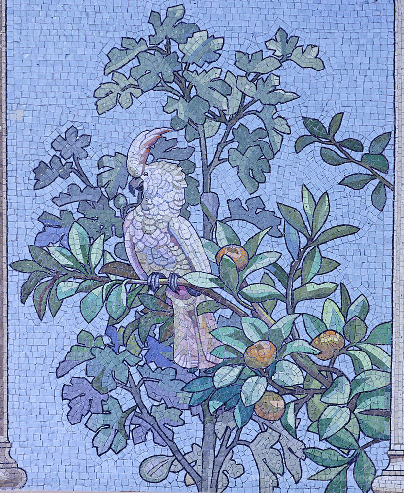 Wir bieten Ihnen eine handgefertigte Reproduktion auf Leinwand des berühmten Kunstwerks 'Mosaic - Speisesaal Zimmer des Sainte-Barbe-Bibliothek, Paris' von Giandomenico Facchina, aus dem Reproduktionsmuseum.