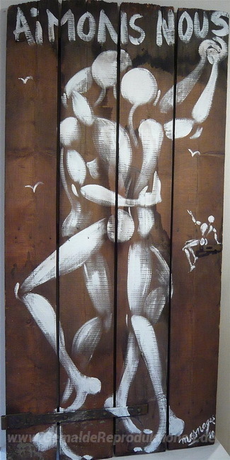 Wir bieten Ihnen eine handgefertigte Reproduktion auf Leinwand des berühmten Kunstwerks 'Aimons-nous' von Jerome Mesnager, aus dem Reproduktionsmuseum.