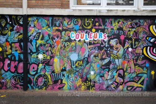 Wir bieten Ihnen eine handgefertigte Reproduktion auf Leinwand des berühmten Kunstwerks 'Ecole Romain Rollan - Les Lilas, Frankreich' von Speedy Graphito, aus dem Reproduktionsmuseum.