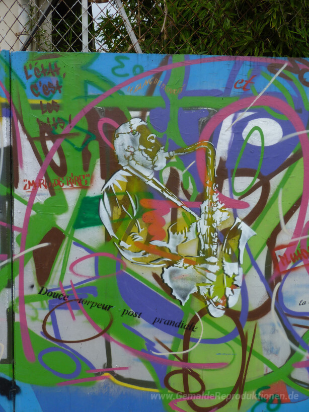 Wir bieten Ihnen eine handgefertigte Reproduktion auf Leinwand des berühmten Kunstwerks 'Ecoute la Rue (Detail)' von Epsylon Point, aus dem Reproduktionsmuseum.