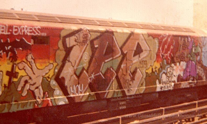 Wir bieten Ihnen eine handgefertigte Reproduktion auf Leinwand des berühmten Kunstwerks 'Hölle Express' von Lee Quinones, aus dem Reproduktionsmuseum.