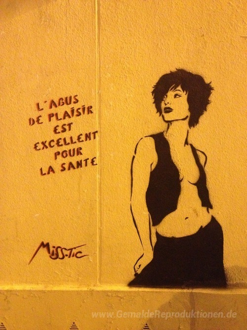 Wir bieten Ihnen eine handgefertigte Reproduktion auf Leinwand des berühmten Kunstwerks 'L'abus de plaisir' von Miss.Tic, aus dem Reproduktionsmuseum.