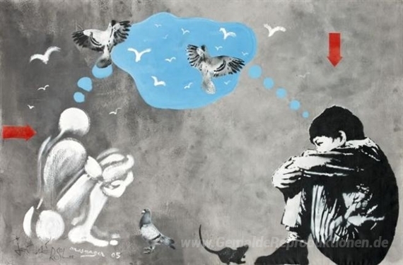Herzlich willkommen in der faszinierenden Welt der Ölgemälde, wo Kreativität und technische Meisterschaft aufeinandertreffen. Eines unserer herausragenden Werke ist das Untitled, eine beeindruckende Zusammenarbeit des renommierten Künstlers Jerome Mesnager mit den bekannten Künstlern Jef Aerosol und Mosko & co. Dieses Meisterwerk vereint verschiedene Stile und Techniken, die nicht nur das Auge erfreuen, sondern auch zum Nachdenken anregen.