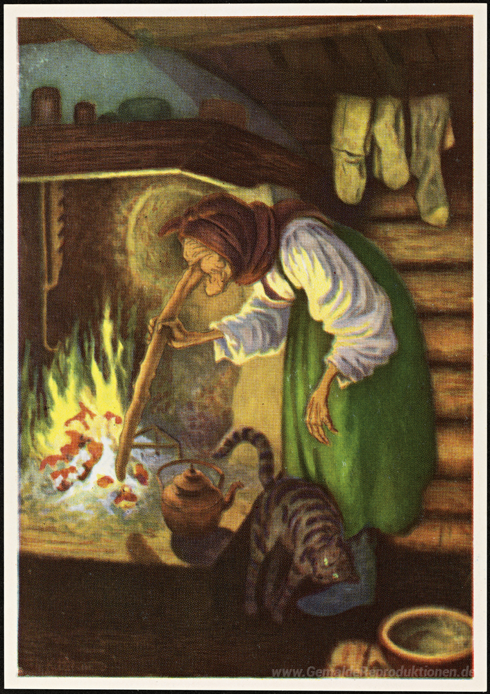 Wir bieten Ihnen eine handgefertigte Reproduktion auf Leinwand des berühmten Kunstwerks ' Kjerringa ved Peisen' von Theodor Severin Kittelsen, aus dem Reproduktionsmuseum.