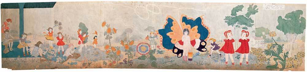 Wir bieten Ihnen eine handgefertigte Reproduktion auf Leinwand des berühmten Kunstwerks '176 Teil zwei. Jennie Richee warten auf den regen zu stoppen ...' von Henry Darger, aus dem Reproduktionsmuseum.