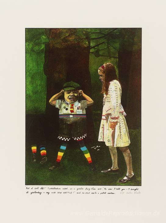 Wir bieten Ihnen eine handgefertigte Reproduktion auf Leinwand des berühmten Kunstwerks 'Aber ist es nicht alt! " Tweedledum rief' von Peter Blake, aus dem Reproduktionsmuseum.