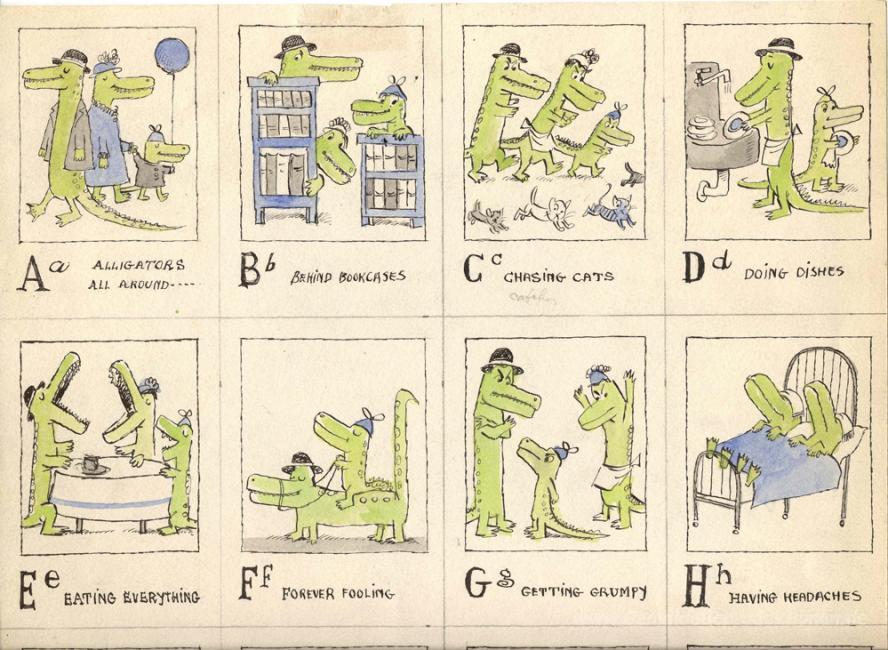 Wir bieten Ihnen eine handgefertigte Reproduktion auf Leinwand des berühmten Kunstwerks 'Alligators All Around' von Maurice Sendak, aus dem Reproduktionsmuseum.