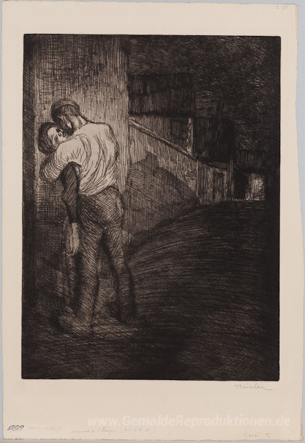 Wir bieten Ihnen eine handgefertigte Reproduktion auf Leinwand des berühmten Kunstwerks 'Amants de Village' von Theophile Steinlen, aus dem Reproduktionsmuseum.