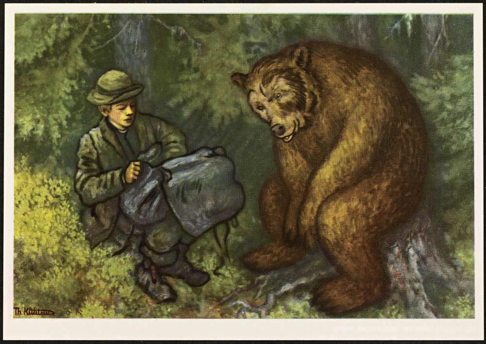 Wir bieten Ihnen eine handgefertigte Reproduktion auf Leinwand des berühmten Kunstwerks 'Askeladdens Abenteuer' von Theodor Severin Kittelsen, aus dem Reproduktionsmuseum.