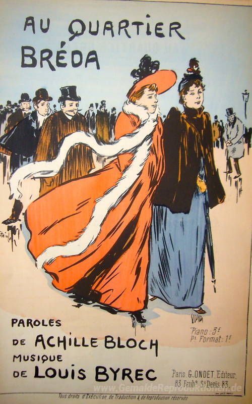 Wir bieten Ihnen eine handgefertigte Reproduktion auf Leinwand des berühmten Kunstwerks 'Au Quartier Breda' von Theophile Steinlen, aus dem Reproduktionsmuseum.