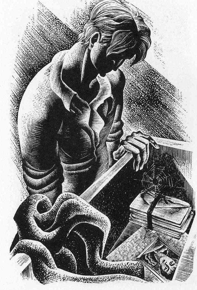 Wir bieten Ihnen eine handgefertigte Reproduktion auf Leinwand des berühmten Kunstwerks 'Auftakt zu einer Million Jahre' von Lynd Ward, aus dem Reproduktionsmuseum.