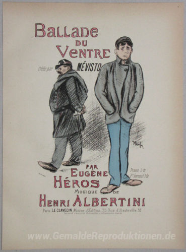 Wir bieten Ihnen eine handgefertigte Reproduktion auf Leinwand des berühmten Kunstwerks 'Ballade du Ventre' von Theophile Steinlen, aus dem Reproduktionsmuseum.