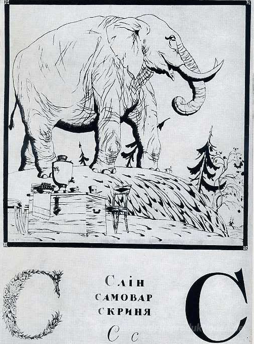 Wir bieten Ihnen eine handgefertigte Reproduktion auf Leinwand des berühmten Kunstwerks 'Blatt 'S' aus dem Album "Ukrainian Alphabet"' von Heorhiy Narbut, aus dem Reproduktionsmuseum.