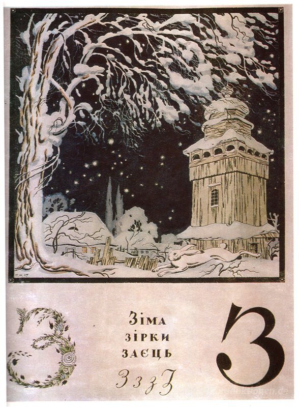 Wir bieten Ihnen eine handgefertigte Reproduktion auf Leinwand des berühmten Kunstwerks 'Blatt 'Z' aus dem Album "Ukrainian Alphabet"' von Heorhiy Narbut, aus dem Reproduktionsmuseum.
