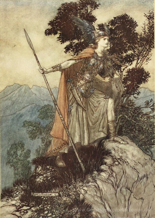 Wir bieten Ihnen eine handgefertigte Reproduktion auf Leinwand des berühmten Kunstwerks 'Brünnhilde' von Arthur Rackham, aus dem Reproduktionsmuseum.