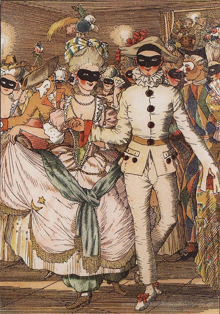 Wir bieten Ihnen eine handgefertigte Reproduktion auf Leinwand des berühmten Kunstwerks 'Buch der Marquise. Abbildung 8' von Konstantin Somov, aus dem Reproduktionsmuseum.