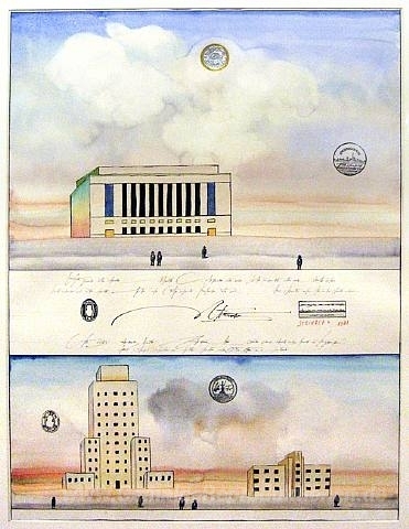 Wir bieten Ihnen eine handgefertigte Reproduktion auf Leinwand des berühmten Kunstwerks 'Bundesprojekte' von Saul Steinberg, aus dem Reproduktionsmuseum.