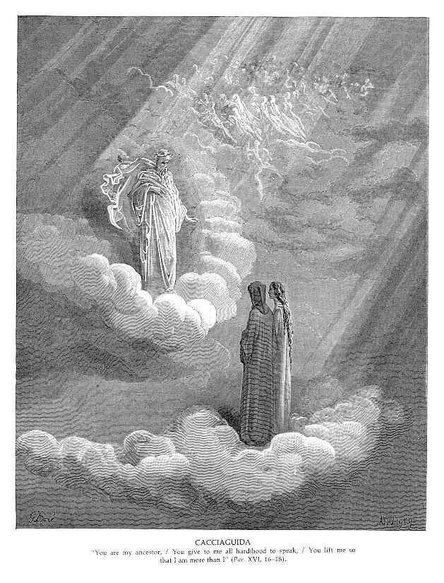 Wir bieten Ihnen eine handgefertigte Reproduktion auf Leinwand des berühmten Kunstwerks 'Cacciaguida' von Gustave Dore, aus dem Reproduktionsmuseum.