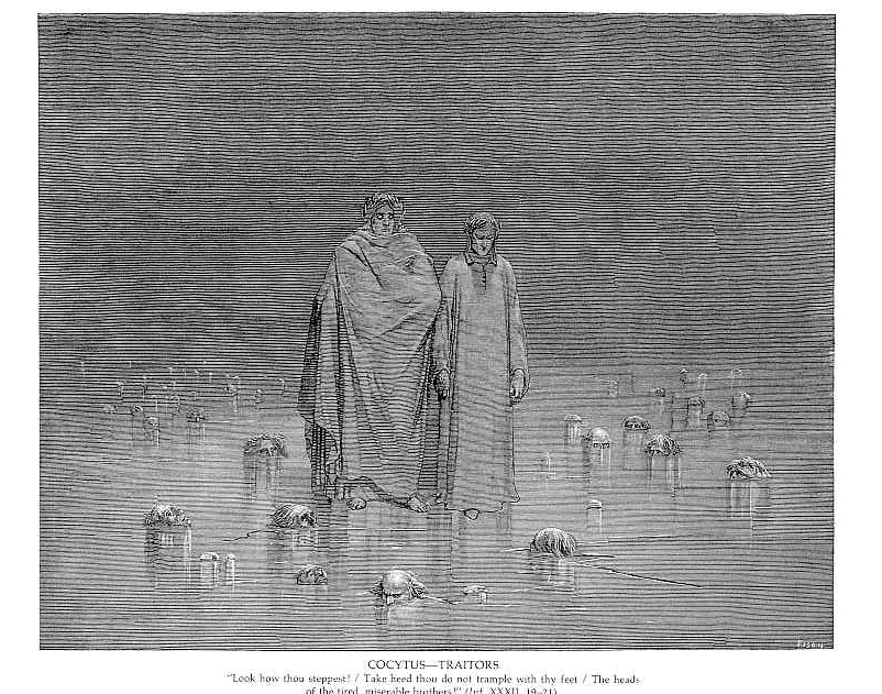 Wir bieten Ihnen eine handgefertigte Reproduktion auf Leinwand des berühmten Kunstwerks 'Cocytus - Traitors' von Gustave Dore, aus dem Reproduktionsmuseum.