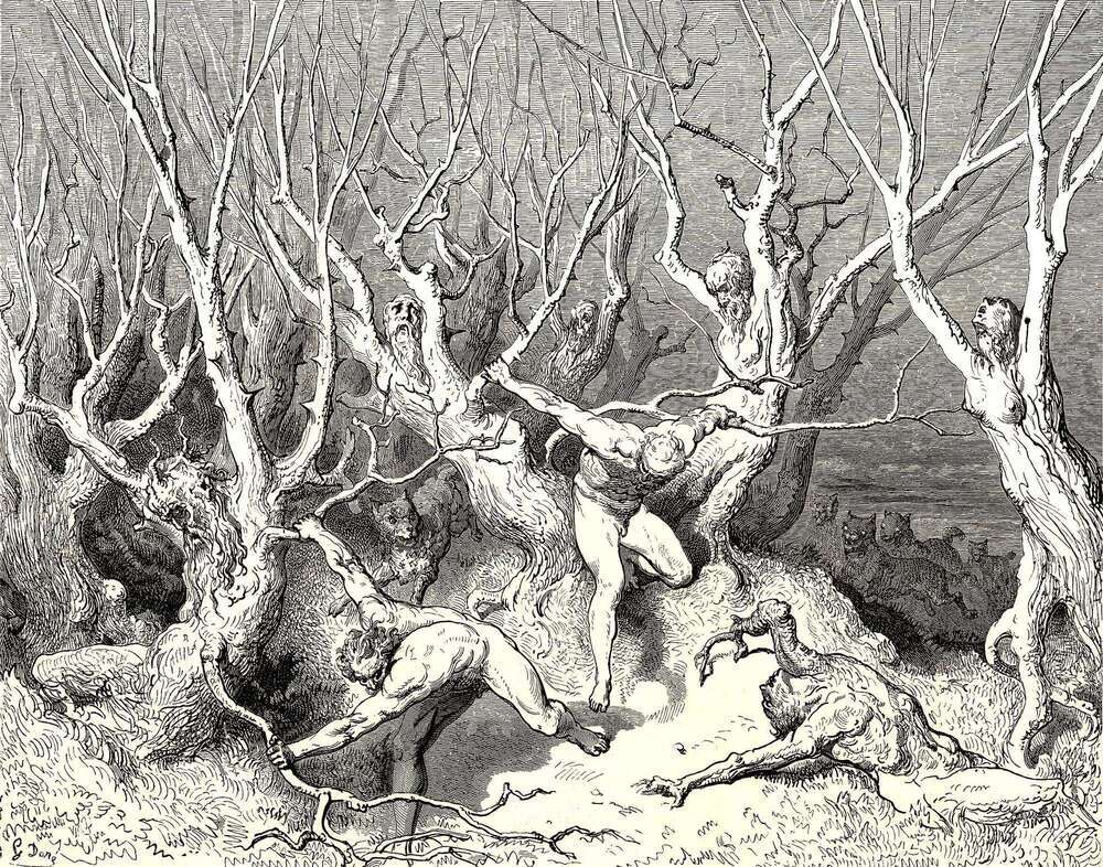 Wir bieten Ihnen eine handgefertigte Reproduktion auf Leinwand des berühmten Kunstwerks 'Das Inferno, Canto 13' von Gustave Dore, aus dem Reproduktionsmuseum.