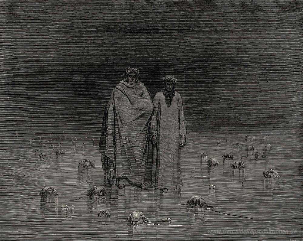Wir bieten Ihnen eine handgefertigte Reproduktion auf Leinwand des berühmten Kunstwerks 'Das Inferno, Canto 32' von Gustave Dore, aus dem Reproduktionsmuseum.