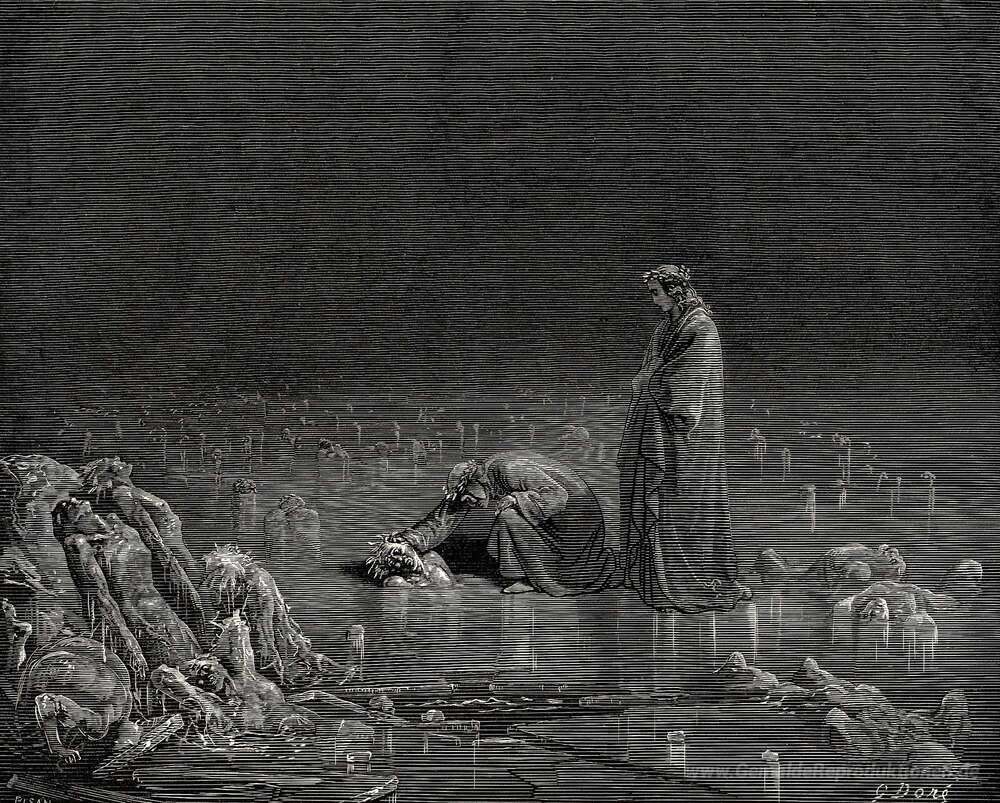 Wir bieten Ihnen eine handgefertigte Reproduktion auf Leinwand des berühmten Kunstwerks 'Das Inferno, Canto 32' von Gustave Dore, aus dem Reproduktionsmuseum.