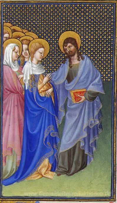 Wir bieten Ihnen eine handgefertigte Reproduktion auf Leinwand des berühmten Kunstwerks 'David Blickt potentielle mystische Vermählung der Christus und d' von Limbourg brothers, aus dem Reproduktionsmuseum.