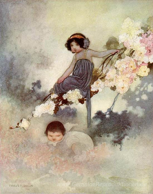 Wir bieten Ihnen eine handgefertigte Reproduktion auf Leinwand des berühmten Kunstwerks 'Der egoistische Riese' von Charles Robinson, aus dem Reproduktionsmuseum.
