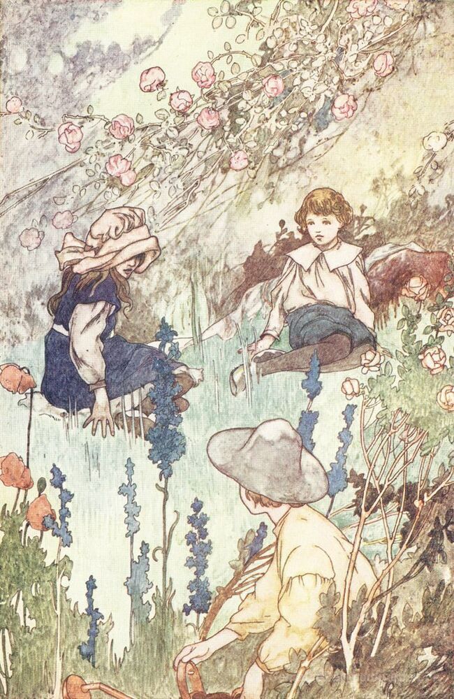 Wir bieten Ihnen eine handgefertigte Reproduktion auf Leinwand des berühmten Kunstwerks 'Der geheime Garten' von Charles Robinson, aus dem Reproduktionsmuseum.