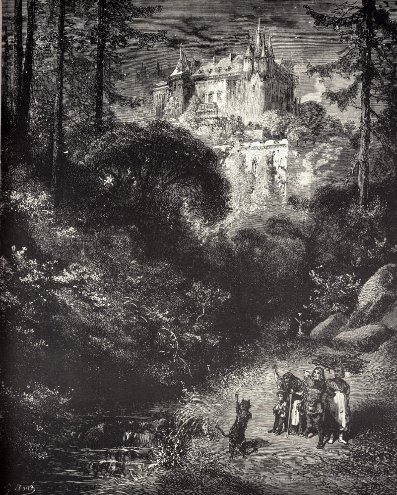 Wir bieten Ihnen eine handgefertigte Reproduktion auf Leinwand des berühmten Kunstwerks 'Der gestiefelte Kater' von Gustave Dore, aus dem Reproduktionsmuseum.
