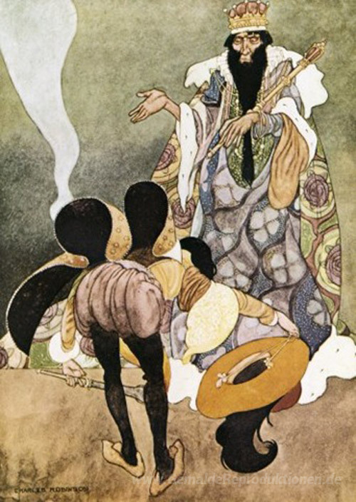 Wir bieten Ihnen eine handgefertigte Reproduktion auf Leinwand des berühmten Kunstwerks 'Der glückliche Prinz' von Charles Robinson, aus dem Reproduktionsmuseum.