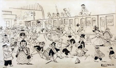 Wir bieten Ihnen eine handgefertigte Reproduktion auf Leinwand des berühmten Kunstwerks 'Der Katze AUSFLUG' von Louis Wain, aus dem Reproduktionsmuseum.