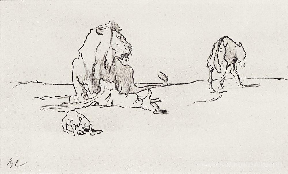 Wir bieten Ihnen eine handgefertigte Reproduktion auf Leinwand des berühmten Kunstwerks 'Der Löwe und der Wolf' von Valentin Serov, aus dem Reproduktionsmuseum.
