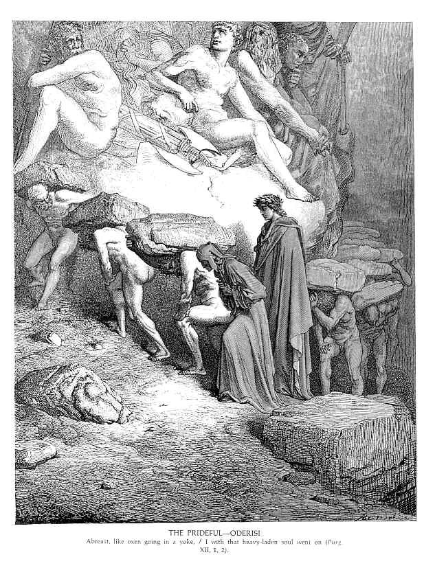 Wir bieten Ihnen eine handgefertigte Reproduktion auf Leinwand des berühmten Kunstwerks 'Der Prideful - Oderisi' von Gustave Dore, aus dem Reproduktionsmuseum.