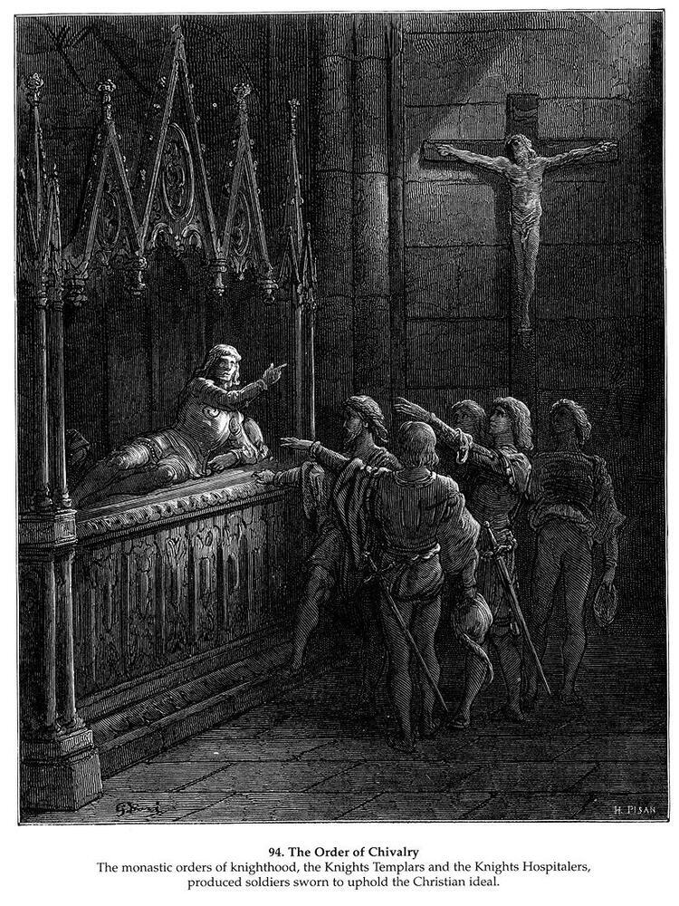 Wir bieten Ihnen eine handgefertigte Reproduktion auf Leinwand des berühmten Kunstwerks 'Der Ritterorden' von Gustave Dore, aus dem Reproduktionsmuseum.