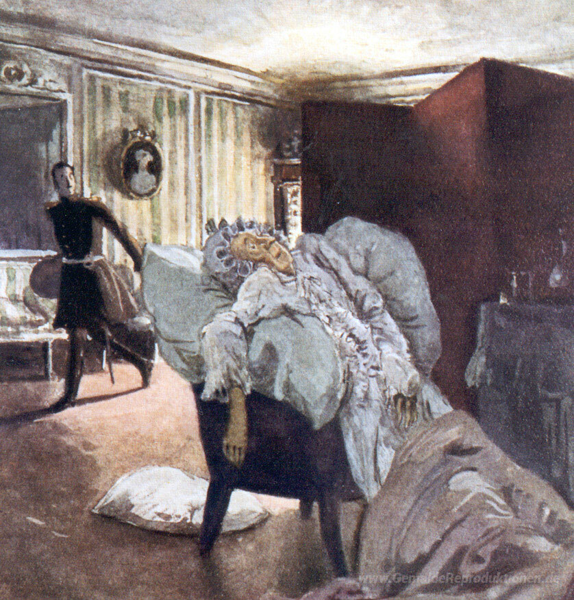 Wir bieten Ihnen eine handgefertigte Reproduktion auf Leinwand des berühmten Kunstwerks 'Der Tod der Gräfin' von Alexandre Benois, aus dem Reproduktionsmuseum.