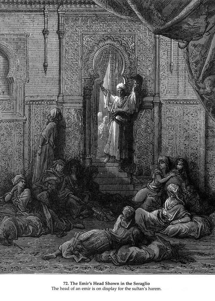 Wir bieten Ihnen eine handgefertigte Reproduktion auf Leinwand des berühmten Kunstwerks 'Des Emirs Leiter in dem Serail Gezeigt' von Gustave Dore, aus dem Reproduktionsmuseum.