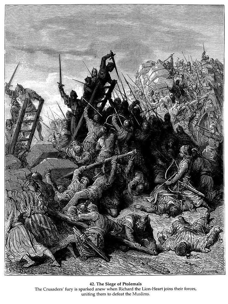 Wir bieten Ihnen eine handgefertigte Reproduktion auf Leinwand des berühmten Kunstwerks 'Die Belagerung von Ptolemais' von Gustave Dore, aus dem Reproduktionsmuseum.