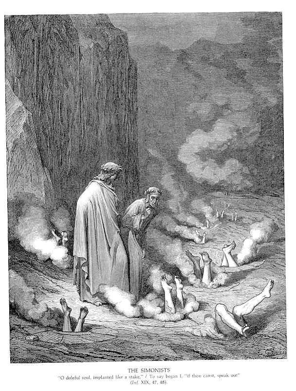 Wir bieten Ihnen eine handgefertigte Reproduktion auf Leinwand des berühmten Kunstwerks 'Die Bestrafung der Simonisten' von Gustave Dore, aus dem Reproduktionsmuseum.