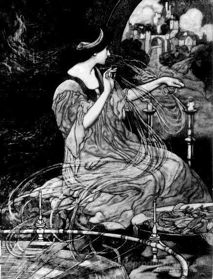 Wir bieten Ihnen eine handgefertigte Reproduktion auf Leinwand des berühmten Kunstwerks 'Die Dame von Shalott' von Charles Robinson, aus dem Reproduktionsmuseum.