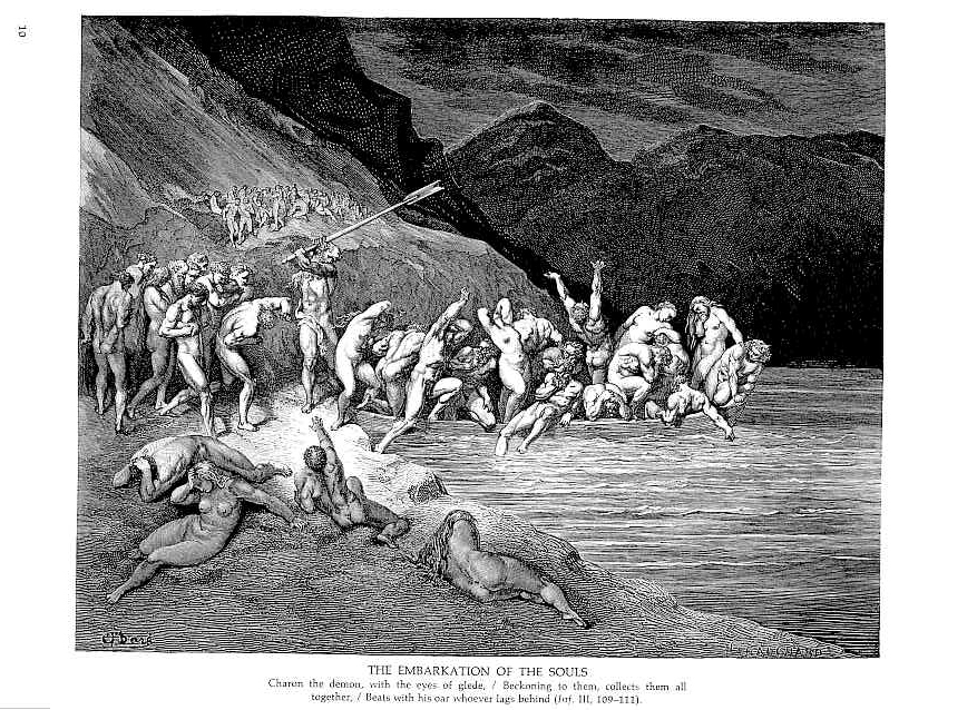 Wir bieten Ihnen eine handgefertigte Reproduktion auf Leinwand des berühmten Kunstwerks 'Die Einschiffung der Seelen' von Gustave Dore, aus dem Reproduktionsmuseum.