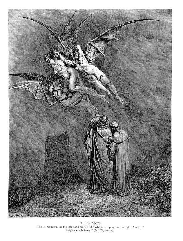 Wir bieten Ihnen eine handgefertigte Reproduktion auf Leinwand des berühmten Kunstwerks 'Die Erinnys' von Gustave Dore, aus dem Reproduktionsmuseum.