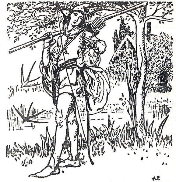 Wir bieten Ihnen eine handgefertigte Reproduktion auf Leinwand des berühmten Kunstwerks 'Die lustige Abenteuer des Robin Hood 5' von Howard Pyle, aus dem Reproduktionsmuseum.