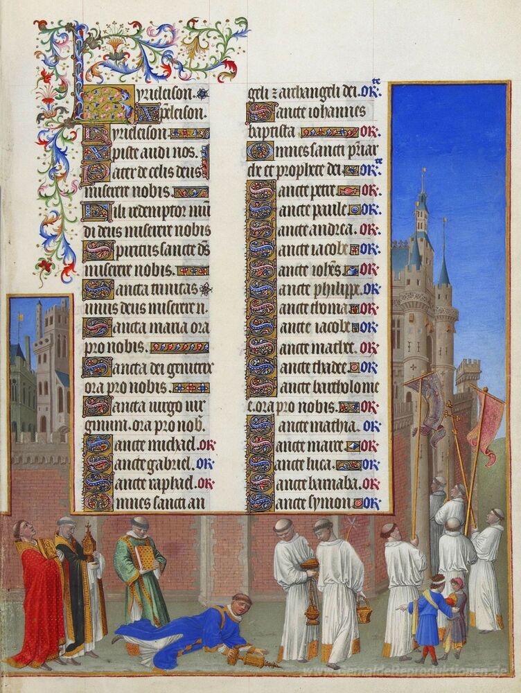 Wir bieten Ihnen eine handgefertigte Reproduktion auf Leinwand des berühmten Kunstwerks 'Die Prozession des Heiligen Gregor' von Limbourg brothers, aus dem Reproduktionsmuseum.